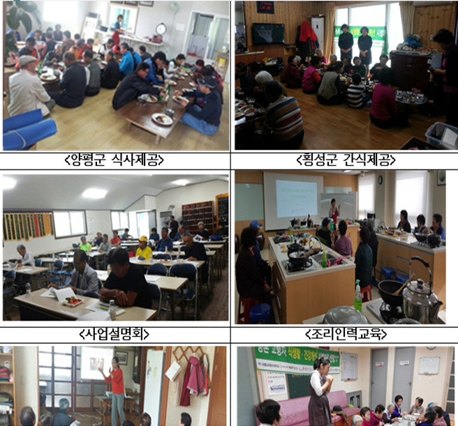 고령자 맞춤형 식단·레시피와 교육교재를 바탕으로 전문 강사가 마을을 직접 방문(월1회 이상)해 농촌 마을 어르신들의 올바른 식단 구성과 식습관병 예방을 위한 실습 위주의 식생활교육 프로그램을 진행할 것.