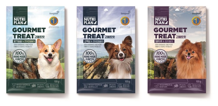 동원F&B(대표이사 김재옥)의 펫푸드 전문 브랜드 뉴트리플랜이 반려견용 100% 수제 간식 '뉴트리플랜 고메트릿'3종(닭가슴살&연어껍질말이, 소떡심&연어껍질말이, 돼지귀&참치말이)을 출시했다고 10일 밝혔다.