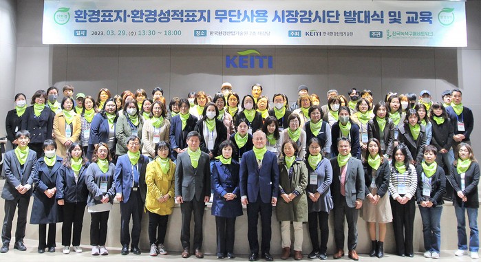 KEITI 한국환경산업기술원은 환경표지와 환경성적표지의 무단 사용을 근절하기 위해 29일 한국환경산업기술원 대강당에서 소비자 100명으로 구성된 시장감시단 발대식을 가졌다. 발대식과 교육은 한국녹색구매네트워크에서 함께 했다.