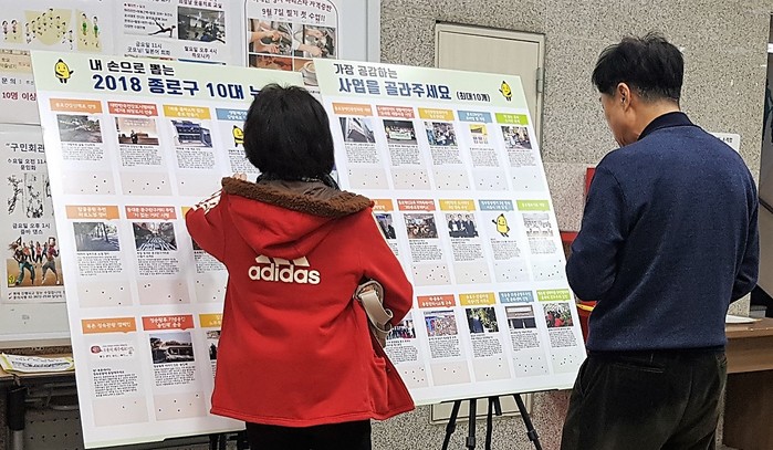 7일간 진행한 '2018년 종로구 10대 뉴스'설문조사에 총1685명이 참여, 30개 후보사업 중 공감하는 사업을 5개에서 최대 10개까지 투표했다.