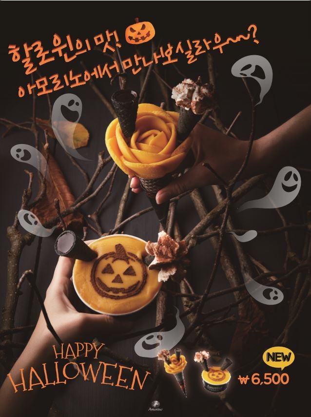 콘과 컵을 모두 검은색으로 변경해 할로윈 분위기를 극대화시킨 아모리노는 특히 컵으로 할로윈 스페셜 젤라토를 주문할 경우, 코코아 파우더로 할로윈을 대표하는 호박 캐릭터를 그려 달콤한 젤라토의 맛에 시각적인 즐거움까지 더했다.
