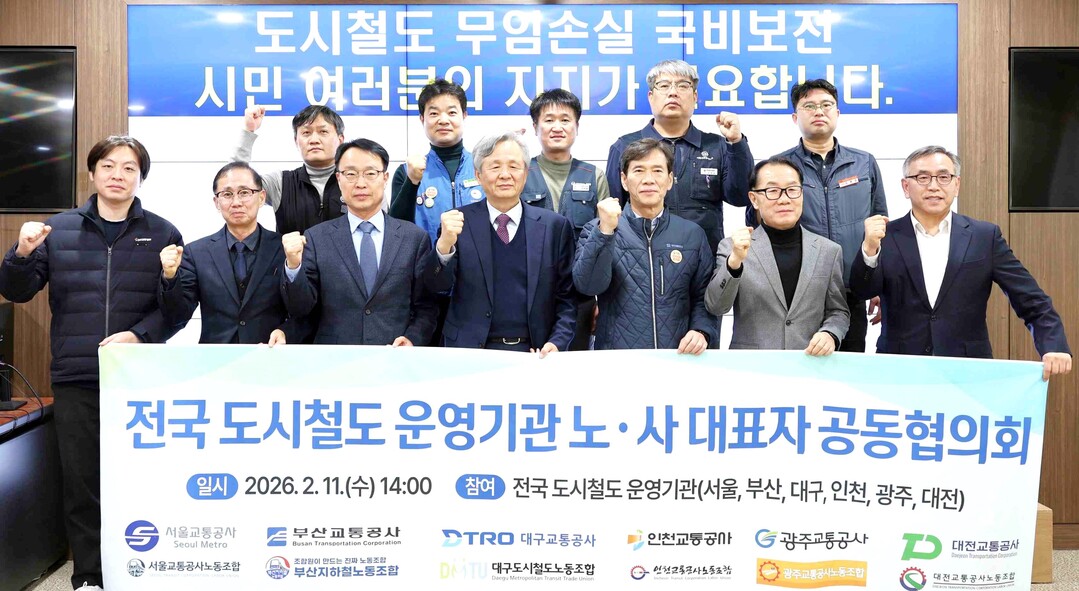 서울교통공사 등 6개 운영기관 노사 대표는 11일 부산교통공사 본사에서 '무임 수송 손실 국비 보전 법제화'와 '노후 시설물 적기 교체 투자 재원 확보'를 골자로 공동건의문을 채택했다고 발표했다.