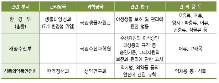 | ▲국제적 멸종위기종 관리 부처별 소관 업무 |