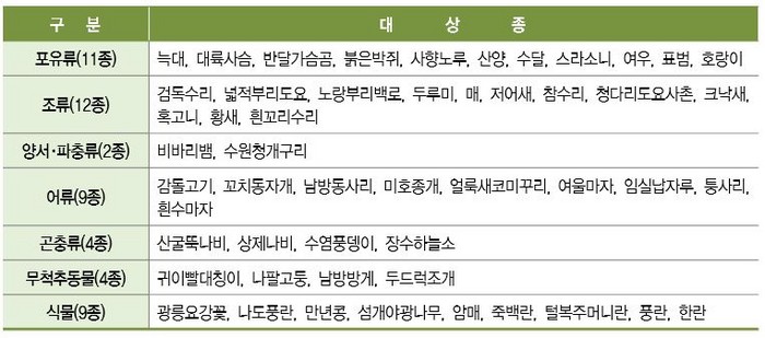 | ▲한반도에서 사라질 위기에 몰련 멸종위기종 1급 리스트 |