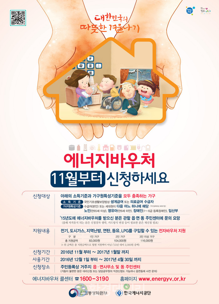 '에너지 바우처' 사업은 겨울철 난방비 부담으로 추위 속에서 어렵게 겨울을 보내는 에너지 취약계층에게 전기, 도시가스, 연탄 등 난방 에너지를 구입할 수 있는 이용권(바우처)을 지원하는 제도이다.