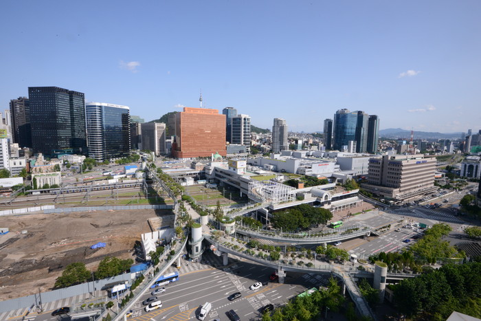 ▲11호 태풍 힌남노가 6일 오전 동해상으로 진출하자 서울은 맑고 푸른 가을 하늘을 되찾았다. 서울 중구 만리동에서 본 '서울로70 17과 서울역 전경 멀리 남산이 보인다. |