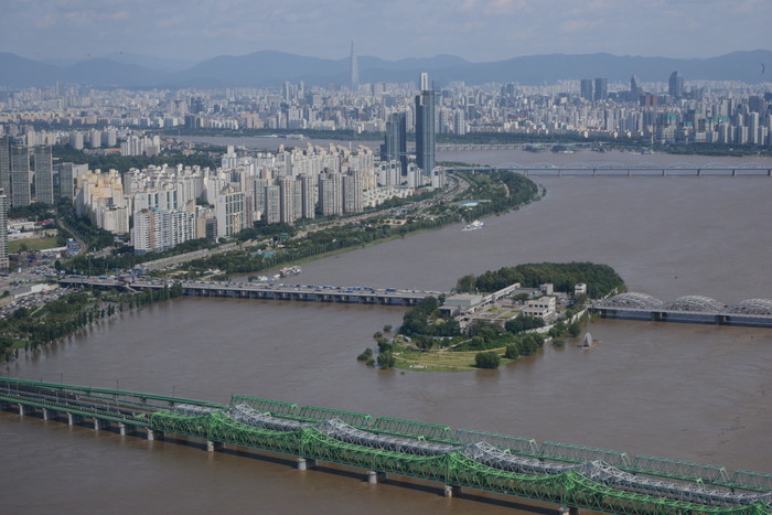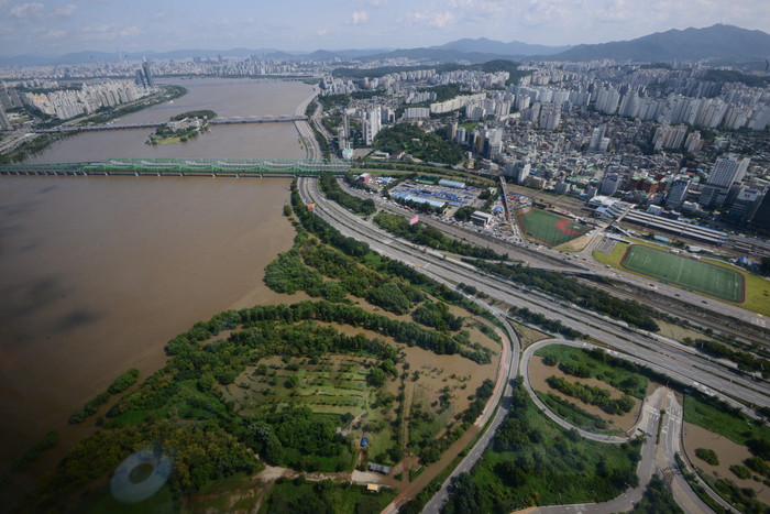 태풍이 지난 서울의 하늘은 맑고 푸르렀다. 한강의 수위에 직접적인 영향을 미치는 팔당댐의 방류가 이어지면서 서울을 지나는 한강 본류는 흙탕물로 가득하고 올림픽대로의 통행이 금지됐다.