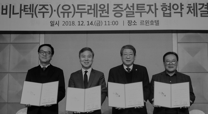 시는 이번 설명회에서 일반산업단지와 친환경첨단복합산업단지 내 증설투자계획을 확정한 2개기업 비나텍(주)(대표 성도경)과 (유)두레원(대표 김정숙)과의 MOU를 체결했고, 비나텍은 이날 협약으로 앞으로 75억을 투자해 3,300㎡(1,000평) 규모의 공장을 증설하고 20여명을 고용할 계획이며, 두레원은 100억을 투자해 30,000㎡(9,090평) 규모의 공장을 증설하고 20여명을 고용할 계획이다.