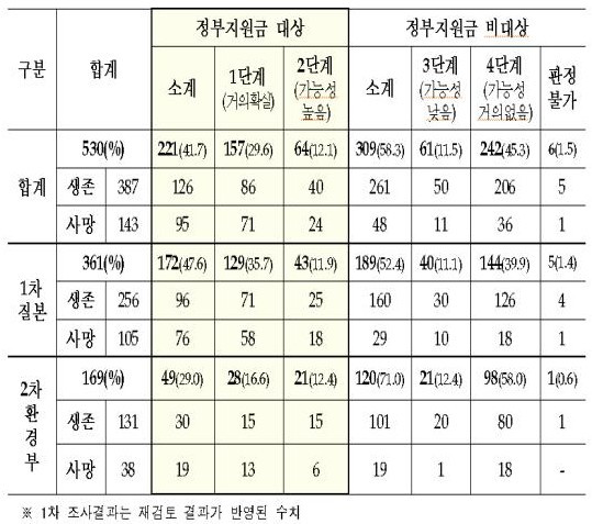 | ▲환경부가 밝힌 가습기살균제 사망자 등 피해 조사 결과표 |