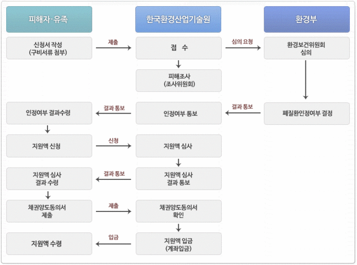 현재 환경부는 4차 피해조사 신청접수 예정이며, 5월중으로 관련 고시를 개정할 계획이다.