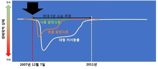 동식물플랑크톤은 사고 후 1~2년 이내 안정화, 저서무척추동물의 경우 최대 3년 소요됐다고 밝혔다.