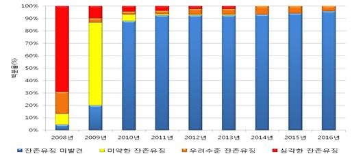 이후 2009년에 9.86%, 2010년에는 4.46%로 감소했으며, 2014년 조사 결과, 유류가 전혀 남아 있지 않았다.