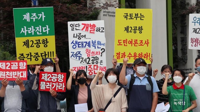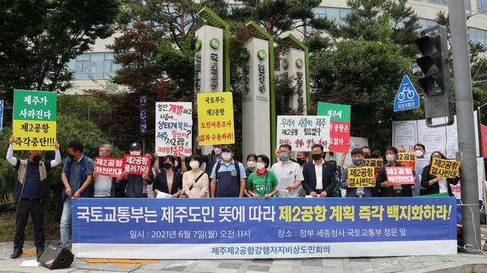 지난해부터 녹색연합, 여성환경연대, 정치하는엄마들, 환경운동연합, 참여연대 등 전국 300개 시민단체가 소속된 '제주제2공항백지화전국행동'과 제주지역 113개 시민단체가 모여 제주제2공항강행저지비상도민회의를 꾸렸다.