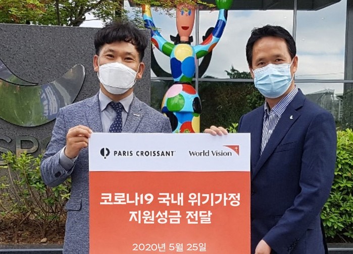 [환경데일리 유혜리 기자]베이커리 브랜드 파리바게뜨를 운영하는 ㈜파리크라상이 코로나19 사태로 어려움을 겪고 있는 취약계층을 지원하고자 직원 모금행사로 마련한 기부금을 월드비전에 전달했다.