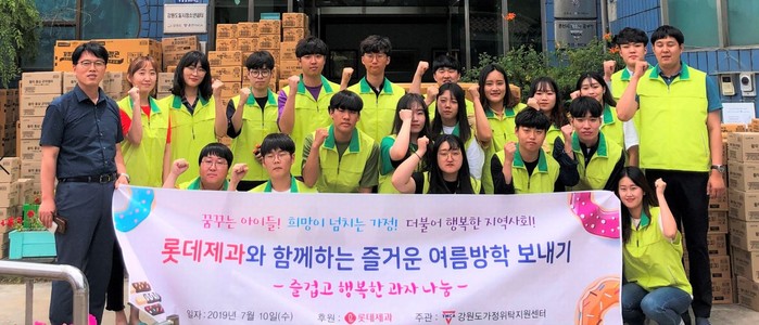 롯데제과는 국제청소년연합에서 주관하는 대학생 해외봉사자를 대상으로 하는 '2019 월드문화 캠프'에 꼬깔콘, 퀘이커 쿠키 등 과자 470박스를 지원했다. 11일 진행되는 중고등학생 대상 '전국청소년자원봉사대회'를 지원하기 위해 '나눔코리아'에 빼빼로, 치토스 등 과자 406박스를 전달했다.