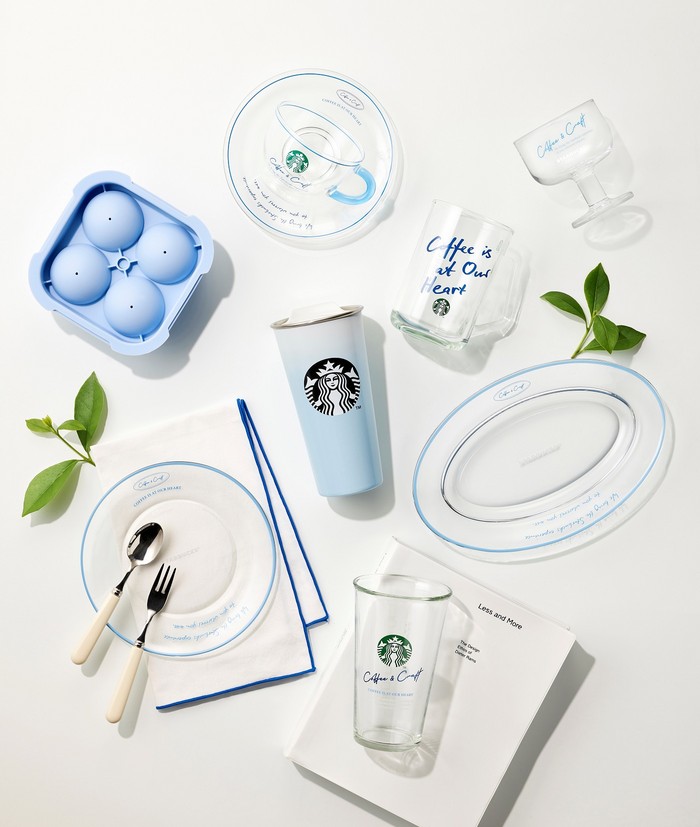 해당 상품들은 청량감을 주는 파란색을 강조한 디자인이 특징으로, 홈카페족을 겨냥한 아이스음료 컵, 디저트 컵을 비롯해 음식 플레이팅에 안성맞춤인 오발 플레이트, 여름철 실용성 높은 아이스 트레이, 텀블러 등 총 8종으로 구성됐다.