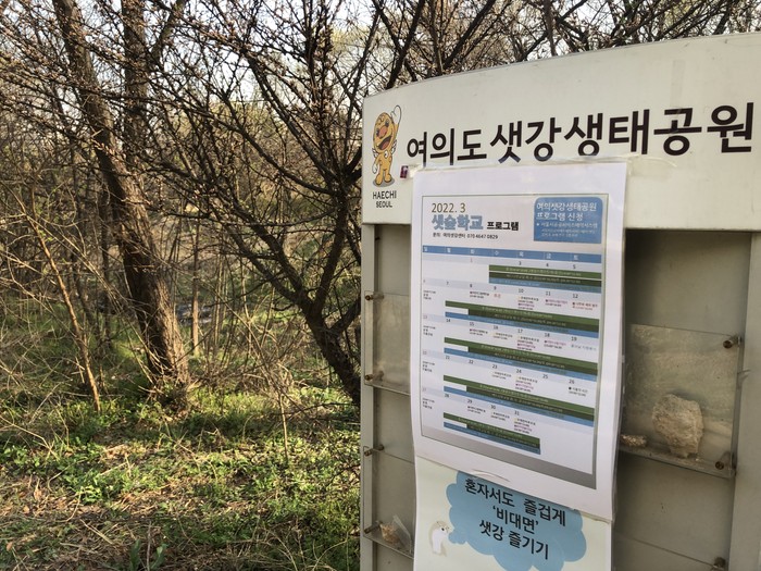 여의도샛강체험관(http://coophangang.kr/)은 여의도역에서 내려 걸어서 8분이면 도착할 수 있다. 여기에 오면 자연생태해설가들과 함께 설명을 들으며 둘려볼 수 있다. 개인적으로 비대면으로 샛강투어 지도를 가지고 주요지역마다 마련된 스탬프를 찍으며 봄을 만낏 할 수 있다.