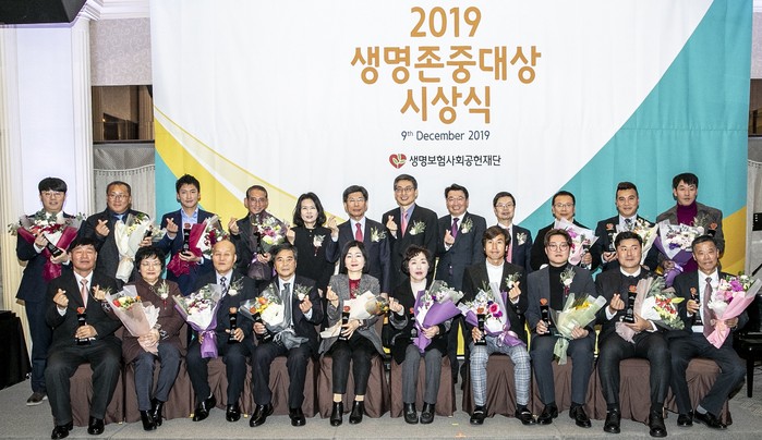 [환경데일리 이은주 기자]생명보험사회공헌재단(이사장 이종서)은 9일 오전 프레스센터에서 '2019 생명존중대상'일반인 부문 시상식을 개최하고, 자기희생과 용기로 타인의 생명을 구한 우리 사회 속 시민 영웅 17명을 시상했다.