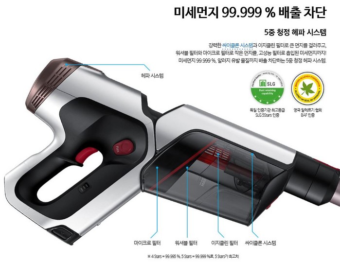 삼성전자측은 최근 미세먼지와 알레르기 유발 물질에 대한 관심이 커지면서 실내 공기질을 좌우하는 청소기 필터 시스템도 소비자들로부터 중요한 구매 요인으로 이에 부흥하기 위해 공신력 있는 전문 시험 기관들의 확실한 인증을 통해 소비자의 건강에 대한 니즈를 충족 시킬 수 있게 됐다고 밝혔다.