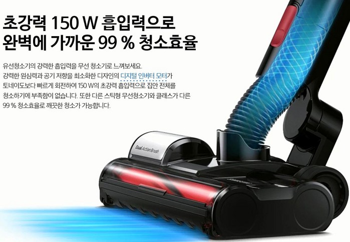 특히 브러시 전용 모터와 양방향으로 분당 5000번 회전하는 '듀얼 액션 브러시' 등이 적용돼 99% 청소 효율을 구현한다. 또한 사용자가 불편하지 않도록 편안하게 사용이 가능한 인체 공학적 관절 구조를 적용했다.