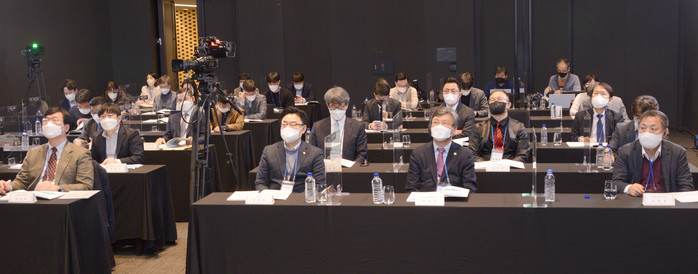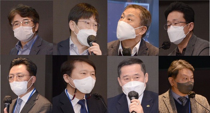 | ▲(상단 사진 왼쪽부터) 김시원 대표, 김재구 대표, 도중호 부사장, 유광태 대표, 이대성 교수, 전양근 부문장, 정상용 이사장, 김정현 사무총장 |
