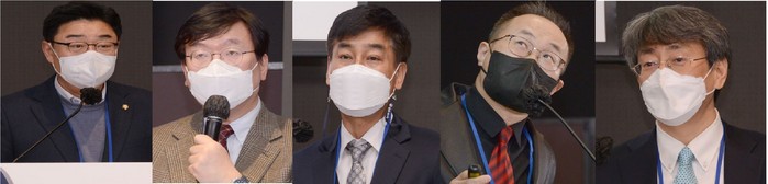 | ▲(사진 왼쪽부터) 김성원 국회의원, 김건하 학회장, 한준욱 하수과장, 김연권 박사, 박준홍 교수 |