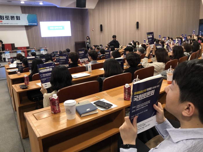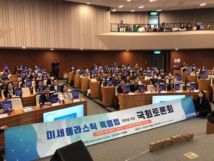 15일 국회박물관에서 열린 미세플라스틱 특별법 제정을 위한 토론회는 (사)소비자기후행동이 주관으로 치뤄졌다. 이자리에는 이수진, 전해철, 노웅래, 전용기 의원과 일반시민 주부, 학생, 기후행동 회원 250여 명이 참석했다.