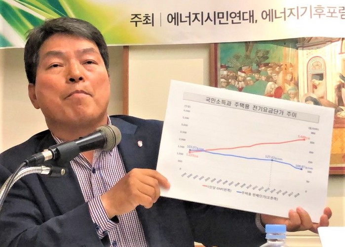 또 "전기요금은 소비과정에서 세금 부과는 당연하다. 요금정책을 능가할 수는 없다는 것을 이미 검증됐고, 주택용 누진제 적용으로 1~2만원 더 낸다고 시민들이 분노하지 않는다."면서 "정부는 핵심을 비껴간 정책으로, 상가에서 쓰고 있는 냉난방 관리를 어떻게 할 것인가. 상가도 누진제로 가야 하는데 정부는 수요분리의 정책이 전혀 없다."고 강조했다.