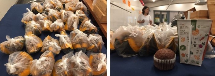 이번 밥상 준비를 한 '건강한 농부 사회적 협동조합'에서도 참여자들에게 감사한 마음의 표시로 단호박을 나눠 훈훈한 현장을 목격했다.