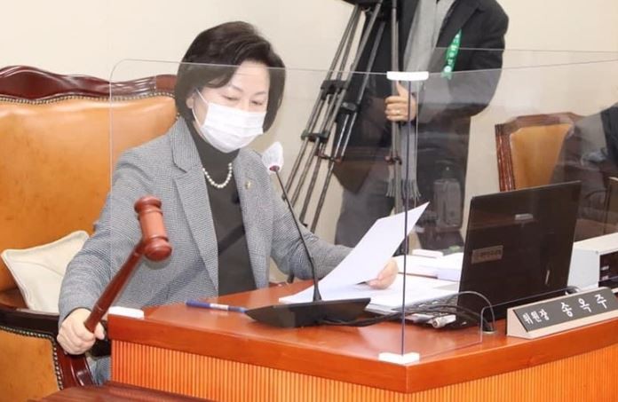 송옥주 환노위원장은 9일 열린 정기국회 마지막 제15차 본회의에서 대표발의한 15건의 법률안이 통과와 관련해서 "감사하다며, 더욱 국민 안전과 환경보호에 노력하도록 최선을 다하겠다."고 말했다.