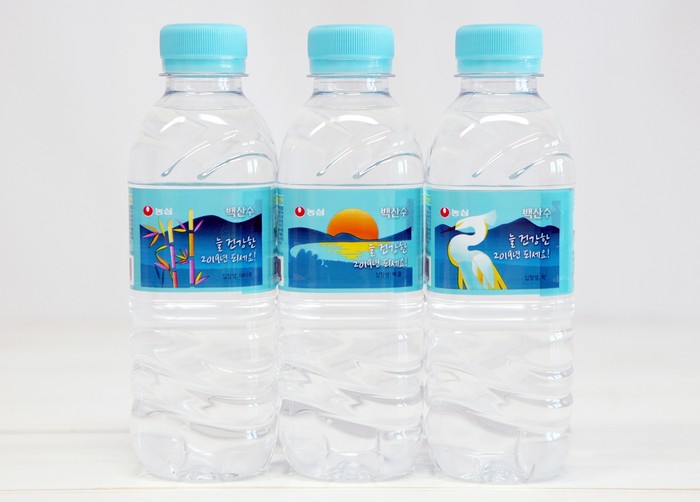 농심 백산수가 새해를 맞아 새 옷을 입었다. 농심은 '늘 건강한 2019년 되세요'라는 문구와 함께 '십장생(十長生)' 디자인을 입힌 백산수를 출시했다고 밝혔다.