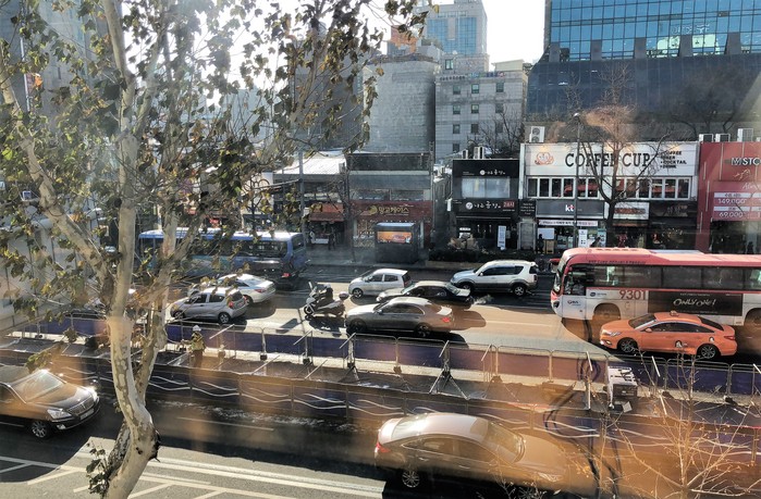 ▲미세먼지 비상저감조치 발령이 빨라지고 예보권역도 촘촘하게 확대되면 도로변 공사장도 즉각 중단되는데 시민들의 대응을 한층 빠르게 될 것으로 전망된다. 사진은 서울 종로구 종로3가역 버스중앙차로 공사장 사진 박노석 기자 |