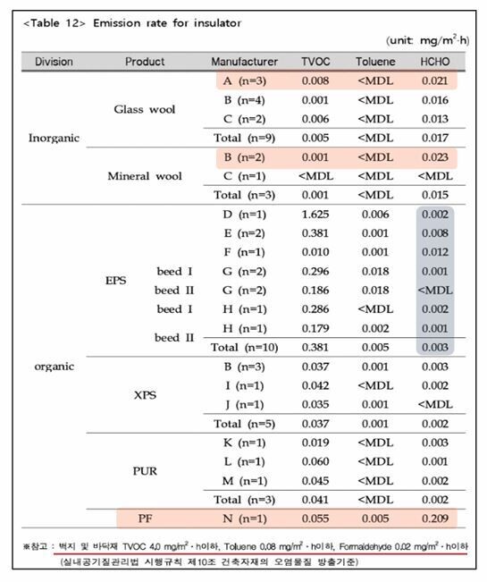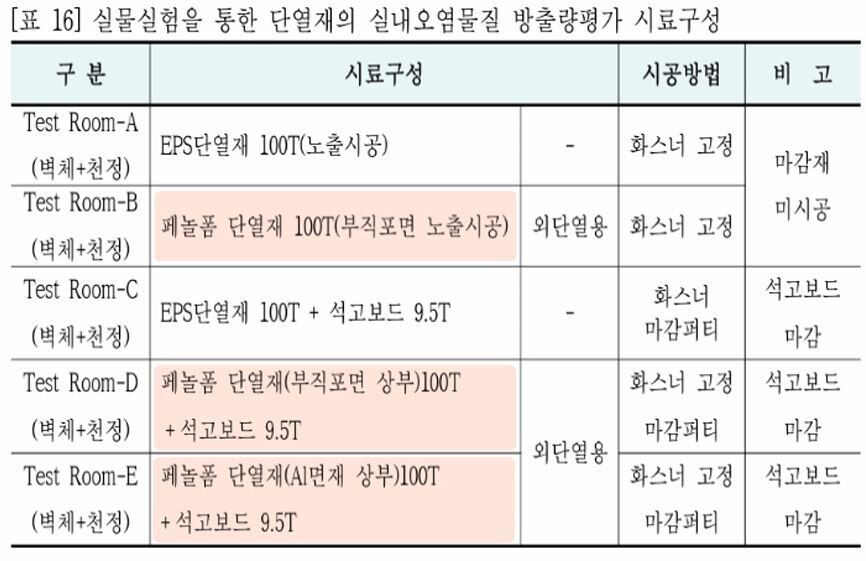 심인근 국립환경과학원 과장은 "실내공기질관리법은 실내 공기와 접촉하는 최종 마감재를 중심으로 설계돼 있다."며 "단열재는 마감재 내부에 위치하는 자재로, 현재 제도상 직접 관리 대상은 아니다"고 설명했다.