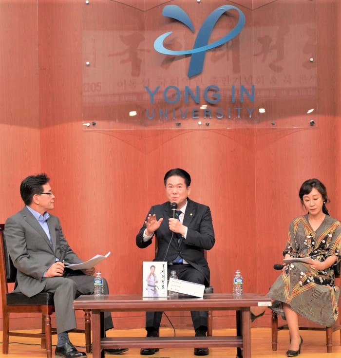 ▲이동섭 의원(중앙)이 펴낸 국기태권도 출판기념회에서 태권도 저력에 대한 입장을 분명하게 밝혔다. |