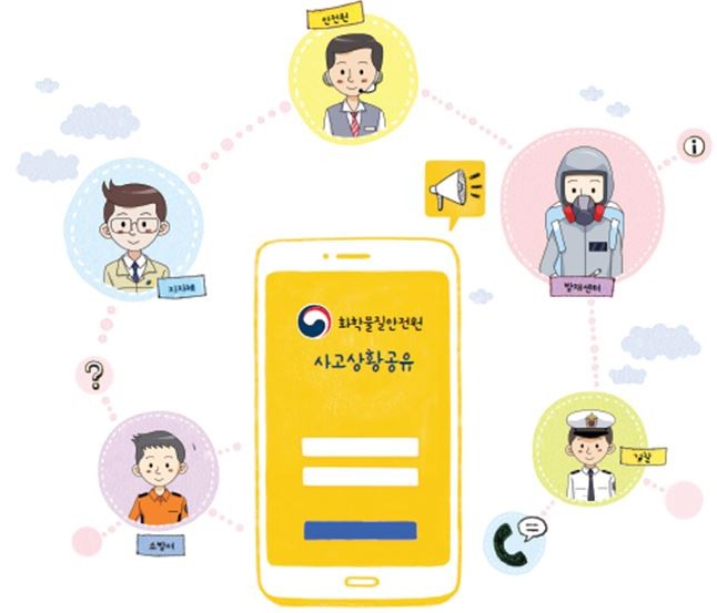 사고상황공유앱은 소방, 군, 경찰, 지자체 등 사고대응기관 종사자들이 사고상황을 사진·문서·동영상 등으로 공유하고 현장에서 신속하게 대응할 수 있도록 활용하는 스마트폰용 어플리케이션이다. 관계자들은 화학물질안전원 담당자에게 별도로 신청 사용할 수 있다.