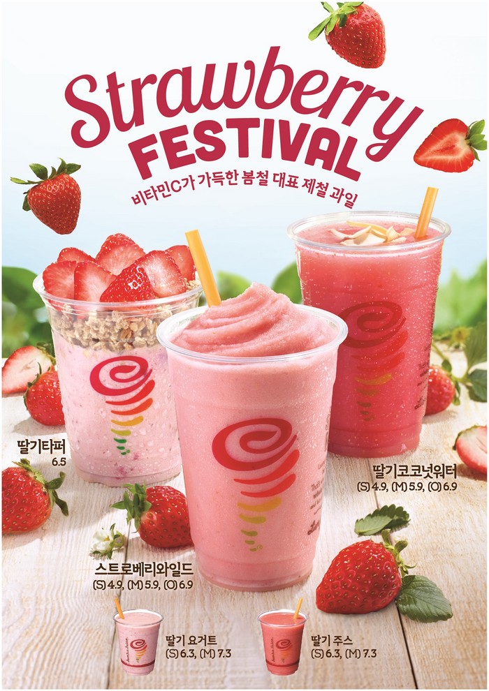 잠바주스 마케팅 관계자는 "딸기는 한국인이 가장 좋아하는 과일 중 하나로, 비타민C가 풍부해 맛은 물론 영양에서도 뛰어나다"며, "봄철 시즌 한정으로 판매하는 잠바주스의 딸기음료와 함께 환절기를 건강하게 이겨내길 바란다"고 말했다.