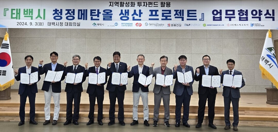 강원 태백시와 플라젠은 3일, 태백시청 대회의실에서 그린메탄올 생산 프로젝트를 위한 업무협약을 체결했다고 밝혔다.