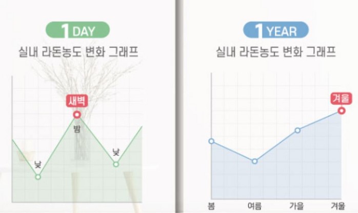 [환경데일리 김영민 기자]다가오는 겨울(동절기)에 실내오염물질 중 하나인 라돈으로 사망자가 대기오염물질보다 높다. 이는 WHO 세계보건기구가 밝힌 내용이다. 라돈은 새벽시간대에 가장 많이 분출(농도)되고, 계절별로는 한 겨울이 더 위험하다. 이유는 기온이 떨어져 춥다는 이유로 환기를 잘 안하기 때문이다.