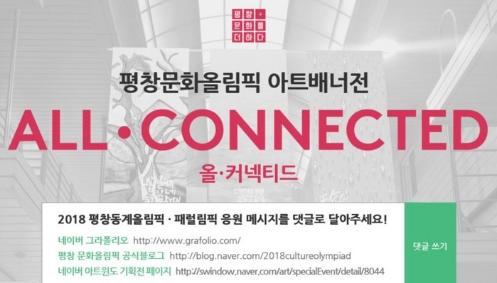 시민 공모로 선정한 2018개의 평창동계올림픽 성공 염원 슬로건과 대한민국 대표 회화작가의 작품 2018점을 엮은 '아트배너전 올-커넥티드(All.Connected)'의 프리뷰 전시(95점)가 9월 12일부터 30일까지 서울 올림픽공원 수변 공간 일대에 전시된다.