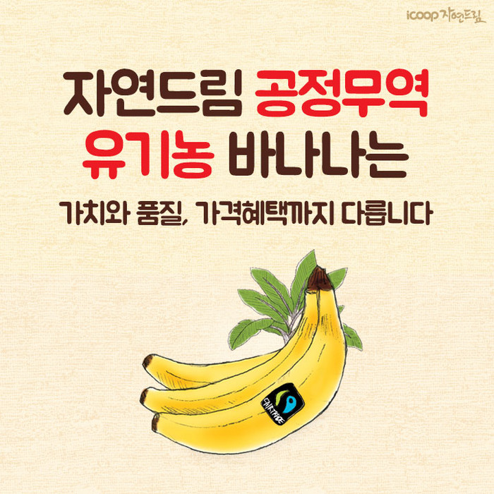 아이쿱자연드림은 지난 15일부터 21일까지 공정무역 유기농 바나나 증정이벤트를 실시한다. 카카오톡 플러스친구로 발송한 쿠폰 제시 시, 1인 1회 증정하며, 매장 내 비치된 바나나 이벤트 홍보판넬 사진을 문자, 카카오톡, SNS로 전송 시 매장에 동행한 최대 4명까지 바나나를 증정한다.