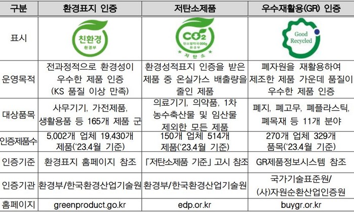 환경표지, 저탄소,우수재활용제품 온오프매장