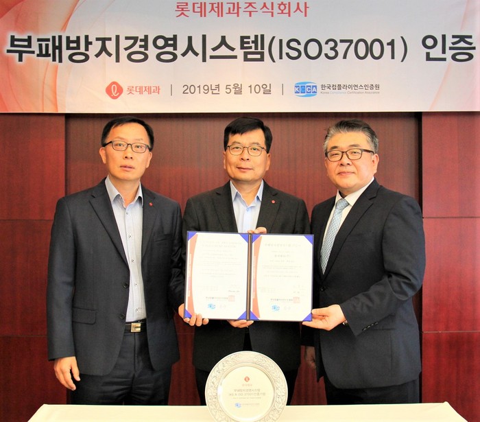 [환경데일리 윤경환 기자]롯데제과가 국내 제과업계 최초로 국제표준 부패방지경영시스템 공인 인증기관인 한국컴플라이언스인증원으로부터 'ISO37001'인증을 취득했다.
