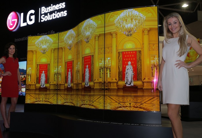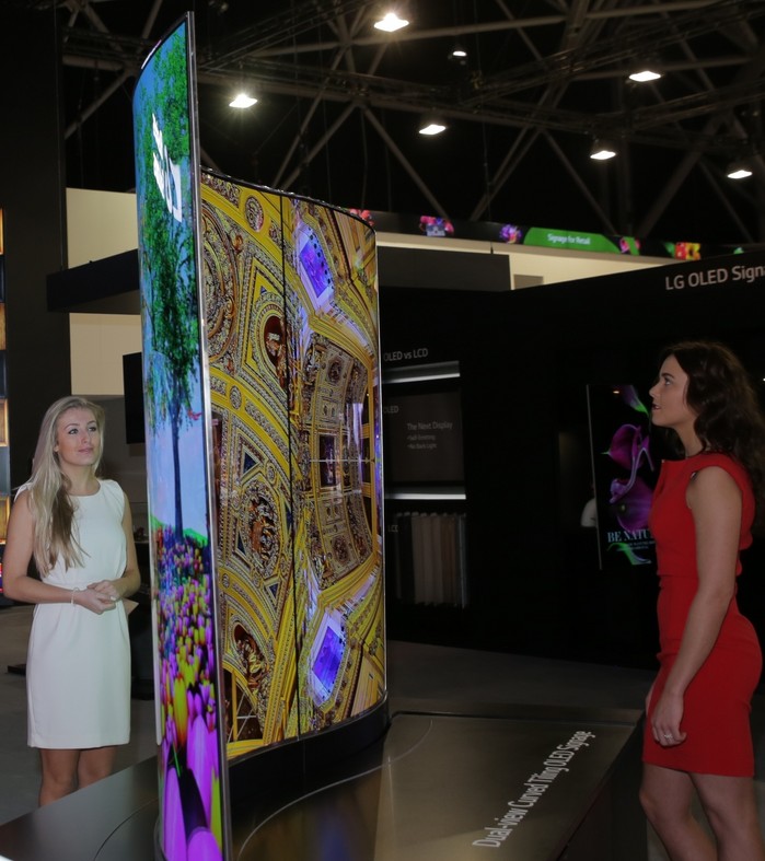 물결 형태로 휘어진 화면을 이어 붙인 사이니지, 위아래로 구부러진 사이니지 등 기존에 볼 수 없었던 형태의 제품들도 주목을 받았다. 올레드는 기존까지 주로 사용하던 LCD 패널에 비하면 두께가 얇고 곡면 형태의 조형물 제작이 가능하다.