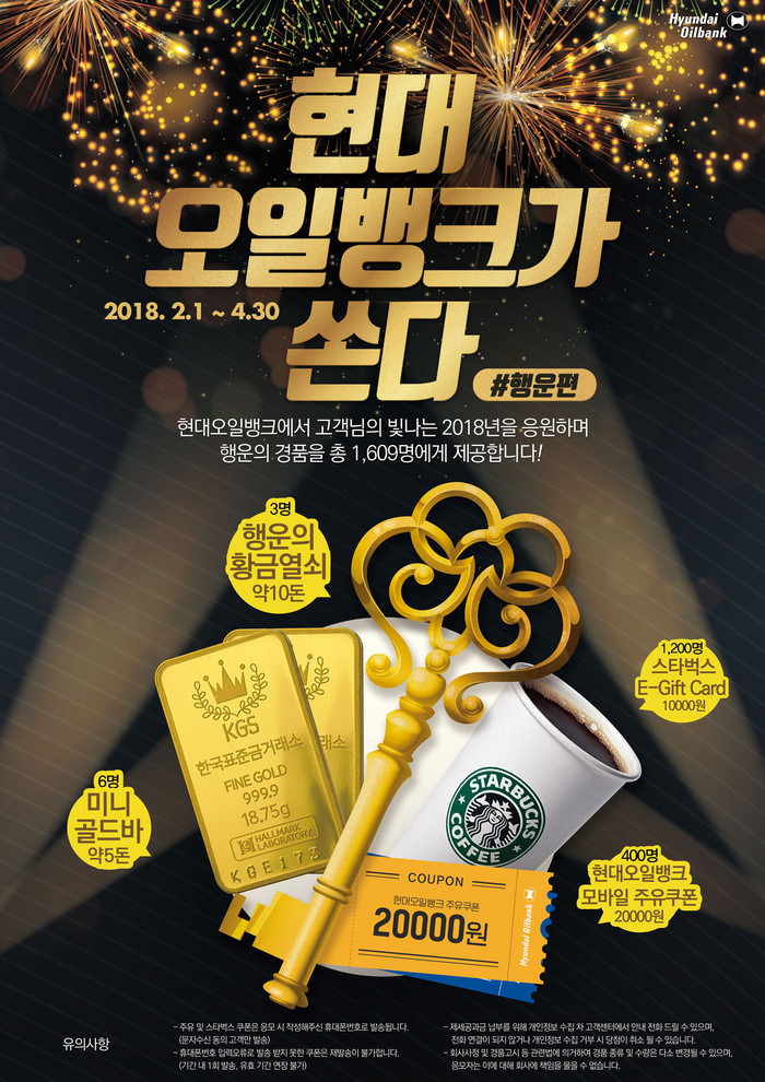 새로운 해를 맞아 행운의 황금열쇠, 골드바, 주유쿠폰, 스타벅스 기프트카드 등 다양한 선물을 총 1609명에게 증정한다.
