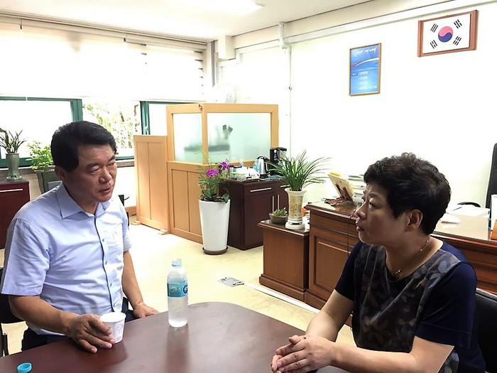 ▲박준희 위원장은 관악초등학교 이경희 교장과 미팅을 통해 학교운영과 앞으로 새학기에 대한 학교 교육 프로그램과 학교지원문제등을 논의했다. |