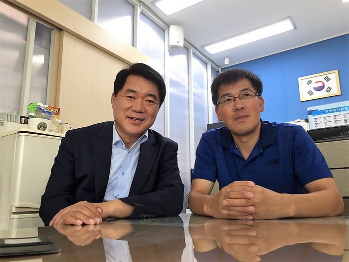 ▲박준희 위원장은 선현철 관악구 청룡동장(사진 오른쪽)이 근무중인 청룡동주민자치센터를 예고도 없이 찾아가 지역 현안을 묻고 상호간 발전에 대해 입장을 나눴다. 신현철 동장은 "박 위원장은 익히 우리 지역의 민원해결사로 많은 일을 해온 발로 뛰는 인물로 앞으로 많은 기대가 모아지고 있다."고 말했다. |