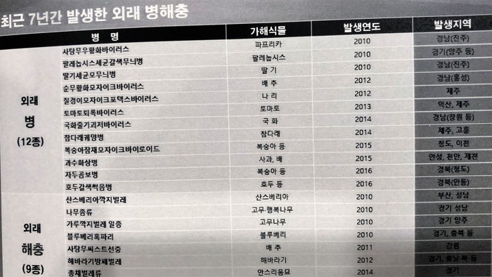 농진청 자료에 따르면, 1900년 이후 외래병해충은 89종, 이중 34종인 2000년 이후 급속히 들어왔다. 이 가운데 돌발해충의 발생면적도 지난해 기준 꽃매미는 2015년 대비 2.4배, 미국선녀벌레 3.7배. 갈색날개미충 1.9배로 껑충뛰었다. 이런 자연재해는 재배작물 생산감소, 다양한 병해충, 잡초 발생으로 이어질 수 밖에 없다.