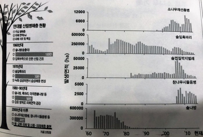 두 번째 발제자인 고상현 국립산림과학원 산림병해충연구과 연구관은 '산림병해충 발생 현황과 대응'에서 60년~70년대 솔나방의 대표적인 산림해충으로 등장한 이후 솔잎흑파리가, 2000년 이후는 소나무를 고사시키는 재선충병으로 산림황폐화를 촉진시켰다.