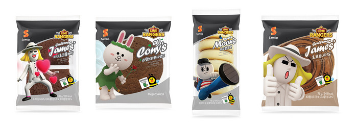 ‘라인 레인저스 빵’은 라인 레인저스의 인기 캐릭터인 브라운, 코니, 샐리, 제임스 등 총 아홉 명의 라인 레인저스 캐릭터를 사용한 제품들로 ‘젠틀맨 제임스의 미니 초코롤케익’, ‘엘프 코니의 리얼브라우니샌드’, ’뽀빠이 문의 우유꿀호떡’, ‘젠틀맨 제임스의 초코토네이도’ 등 4종이 출시됐으며, 가까운 슈퍼나 편의점에서 구매할 수 있다.