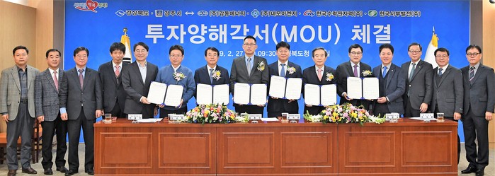 이에 27일, 경북도청에서 경북도, 경주시, ㈜강동에너지, ㈜네모에너지, 한국수력원자력㈜, 한국서부발전㈜과 1조 4000억원 규모로 '수소연료전지발전소'를 조성하는 투자유치 MOU를 체결했다.